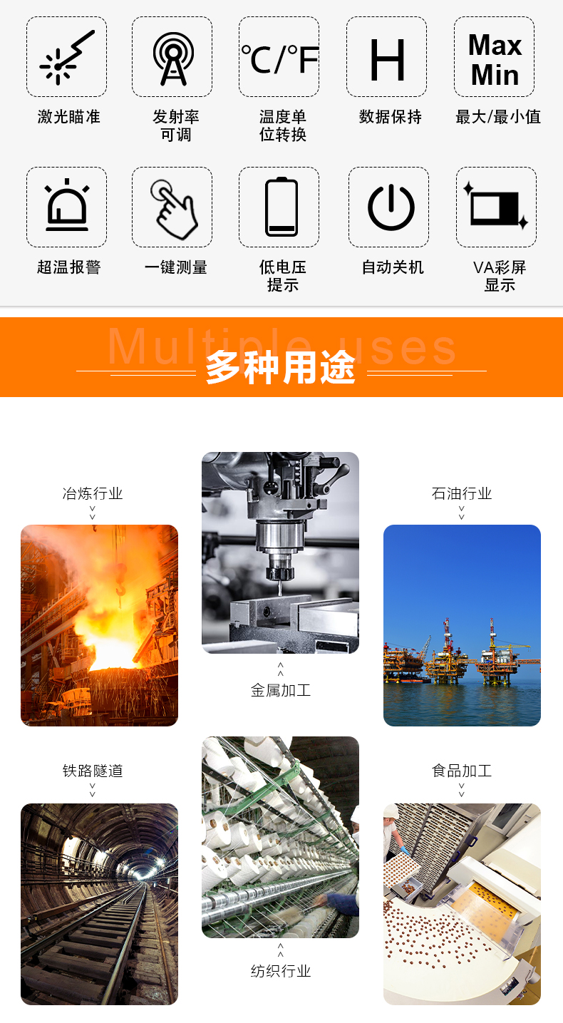 简介:测量物体表面温度400600900度测量范围