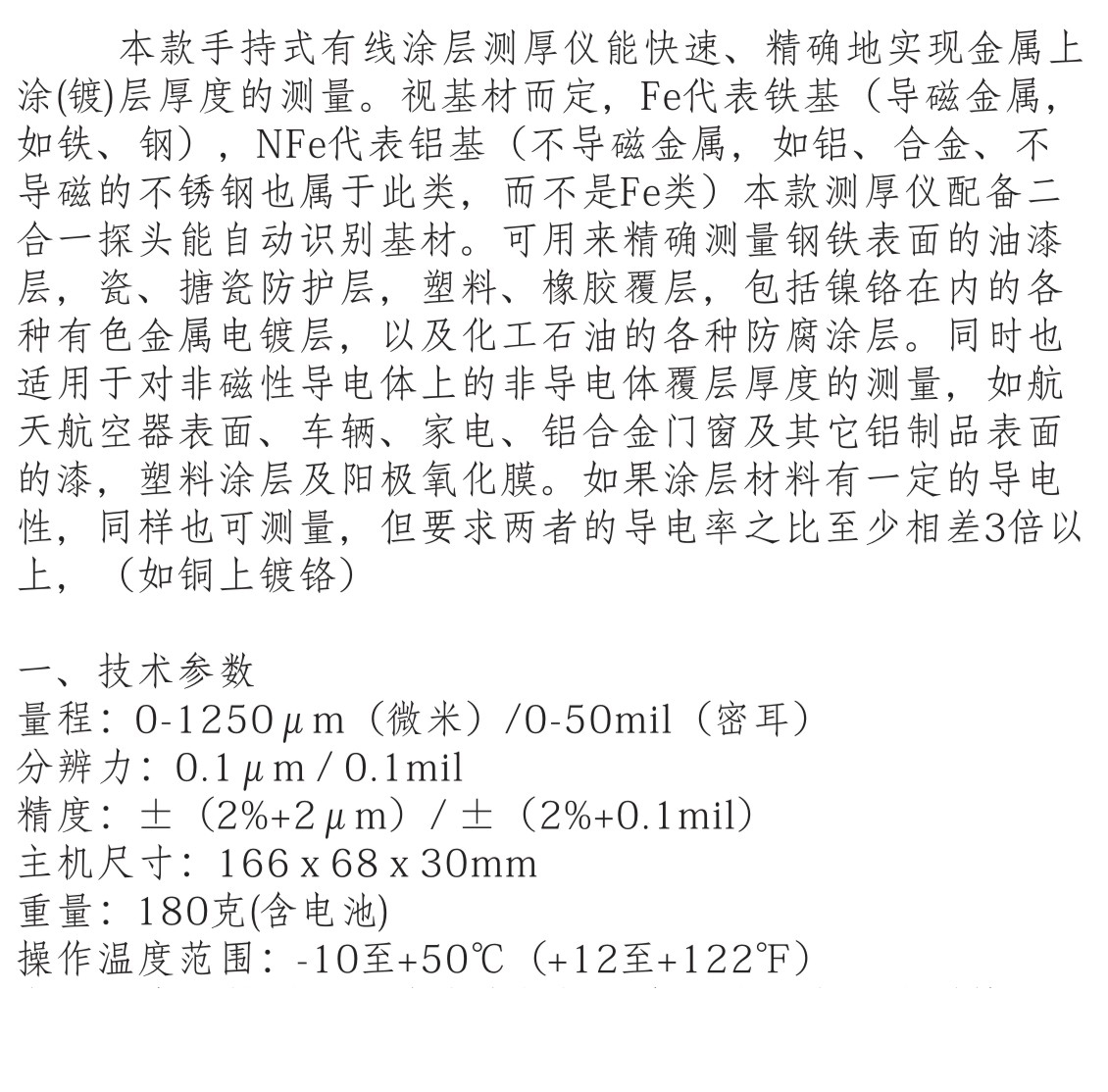 简介:操作方式:自动量程产品名称: 涂层测厚仪