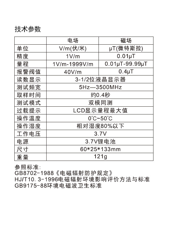 本电磁辐射测试仪具备下列特点: