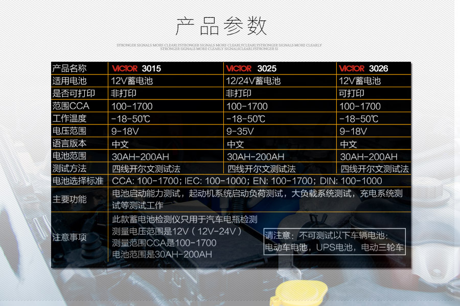 产品型号:VICTOR 3015 产品名称:智能蓄电池检测仪