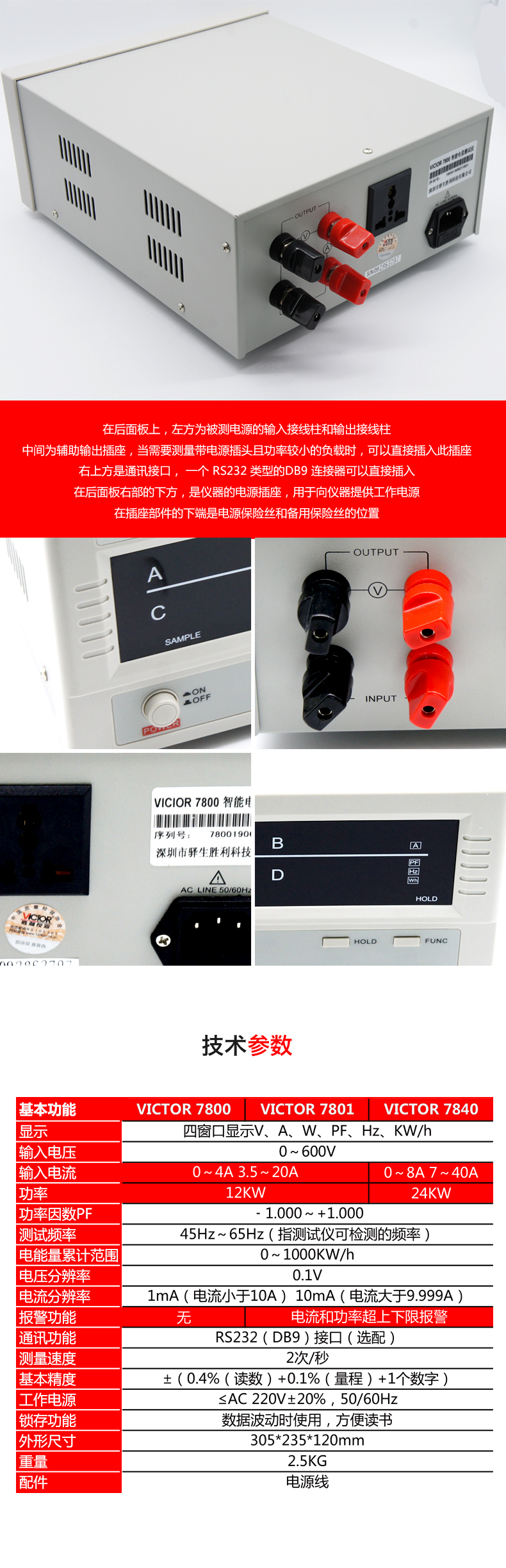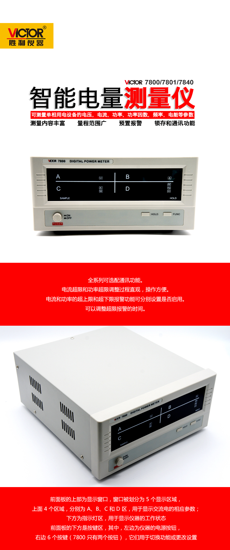 产品型号:VICTOR 7800 7801 7840操作方式:产品名称:智能电量测量仪