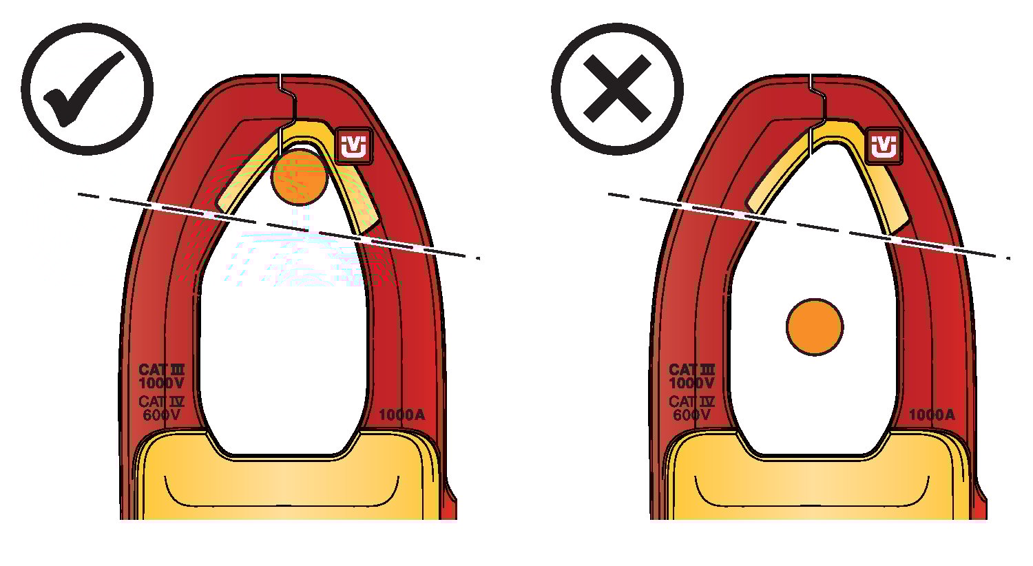 将电线尽可能置于靠近钳口开口的位置(见图)。![]() | ||||