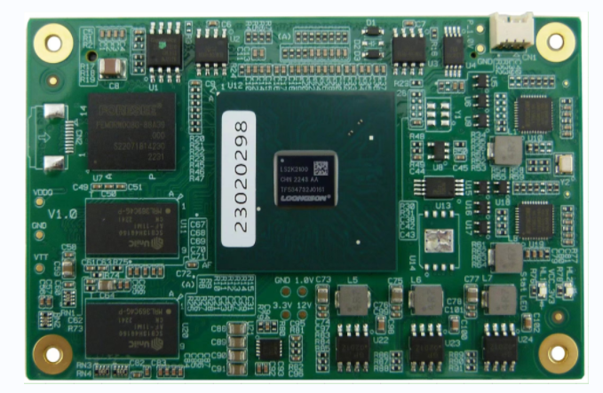本模块为基于龙芯2K1500处理器研制的SOC单芯片解决方案,参考PICMG COM Express规范以及COM Express Type10的pin脚定义,尺寸为Mini Module(84mmx55mm)。模块采用2K1500处理器,双核主频1.1GHz(TDP),标配板载2GB DDR3内存颗粒(可选4GB),板载8GB EMMC(可支持128GB),模块采用产化元器件设计。